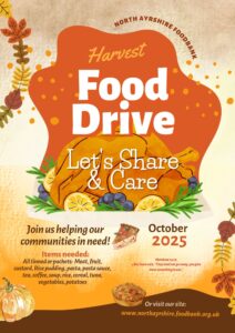 The farming community, as well as individual plot holders at allotments and community gardens across North Ayrshire, will be working hard to reap the benefits of their year long work. Harvesting. A time of community celebration and thanksgiving. Schools, churches, community groups as well as households will hold events to acknowledge our gratitude for all of the hard work and the blessings of nature (including the animals and insects who contribute to this success). It’s also a time to reflect upon those less fortunate within our societies. In biblical times there were harvesting rules called gleaming. This allowed those without land to bring in crops around the edges of the field after the landowner had completed his/her work. In this modern age such opportunities are rare and we now donated tins and packet food at our communal celebrations.